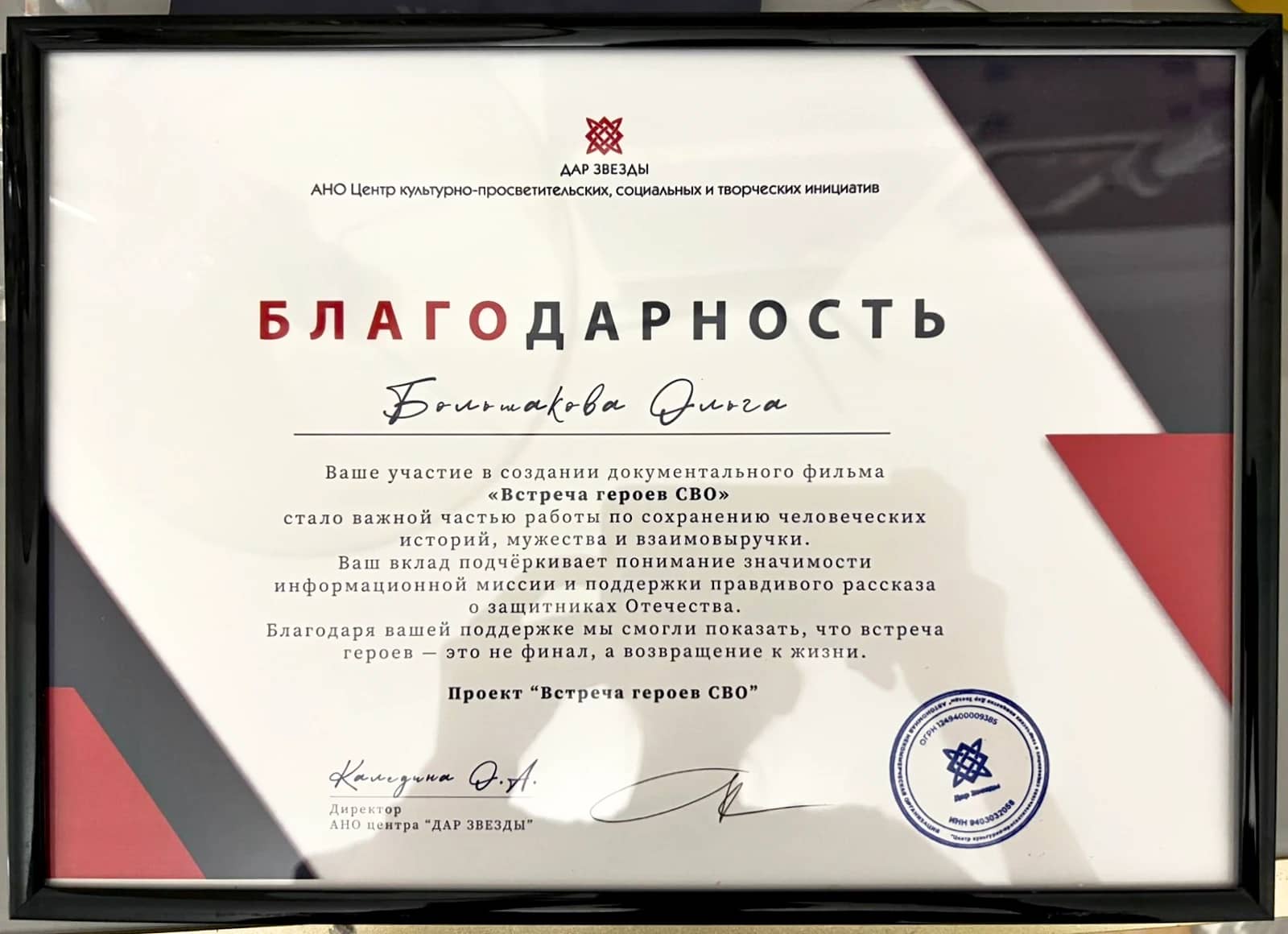 Компания «Автопортрет» считает важным сохранить патриотический дух, рассказать реальные человеческие истории бойцов СВО про мужество и взаимовыручку. Нами был предоставлен автомобиль для съемок фильма «Встреча героев СВО» Ольги Калединой.